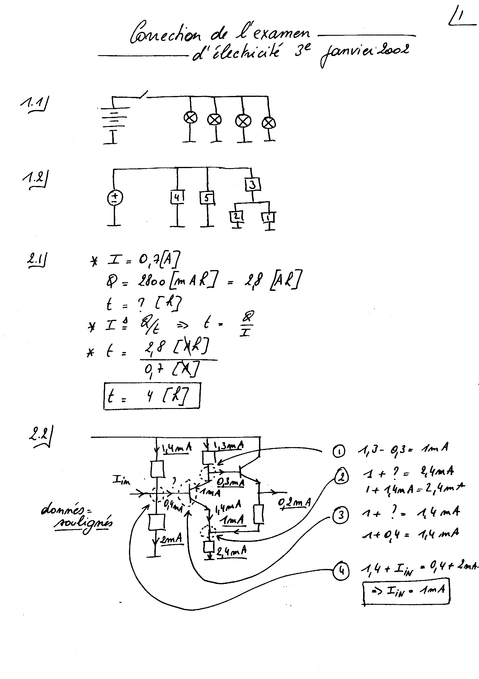 Correction de l'examen de janvier 2002 : Elec 3ème
